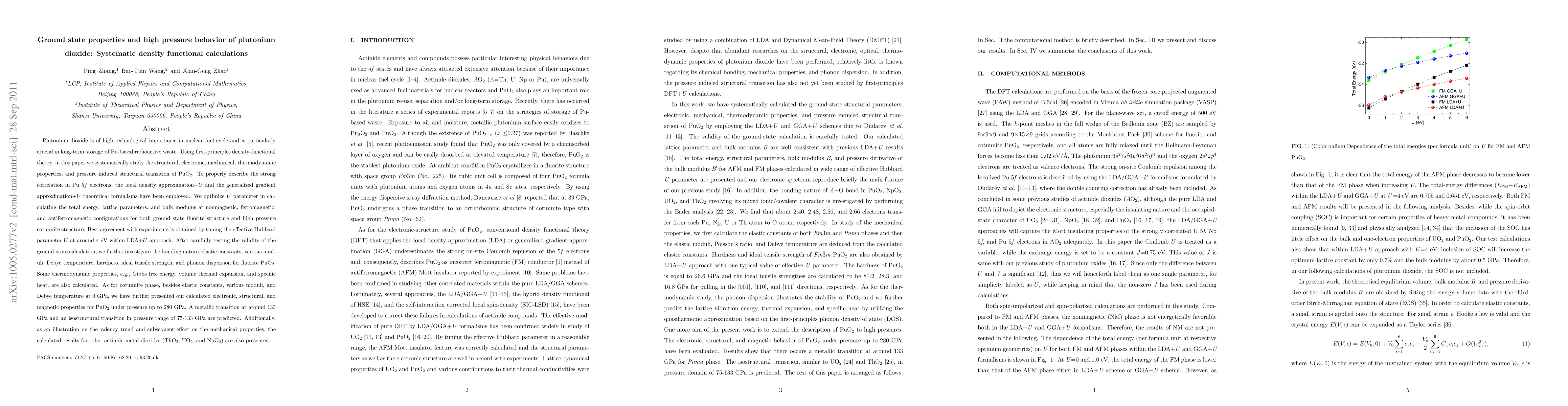 This paper systematically investigates the ground state properties and high pressure behavior of plutonium dioxide using density functional theory. It explores structural, electronic, mechanical, and thermodynamic properties, predicting a metallic transition and structural changes under high pressure.
