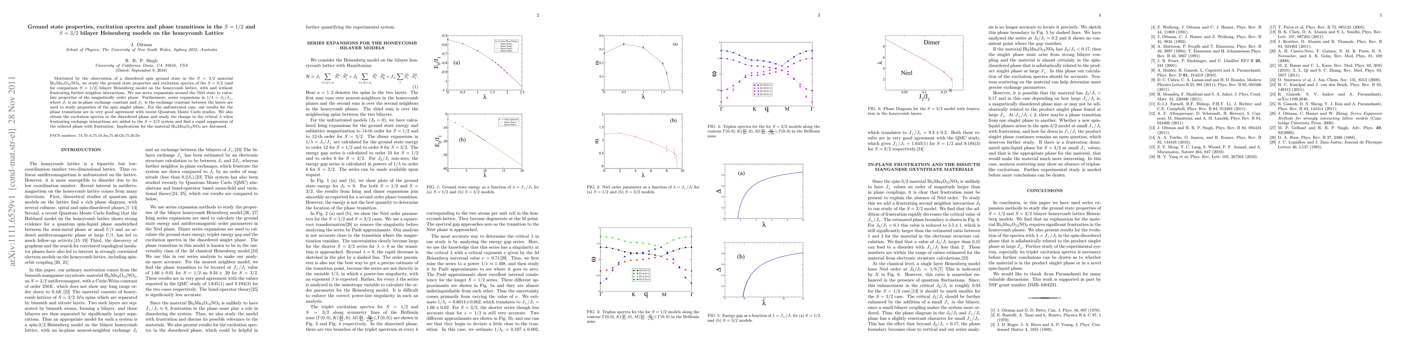 This paper investigates the ground state properties, excitation spectra, and phase transitions in $S=1/2$ and $S=3/2$ bilayer Heisenberg models on the honeycomb lattice, comparing results with recent Quantum Monte Carlo studies and discussing implications for the material Bi$_3$Mn$_4$O$_{12}$NO$_3$. It finds that frustration rapidly suppresses the ordered phase in the $S=3/2$ system.