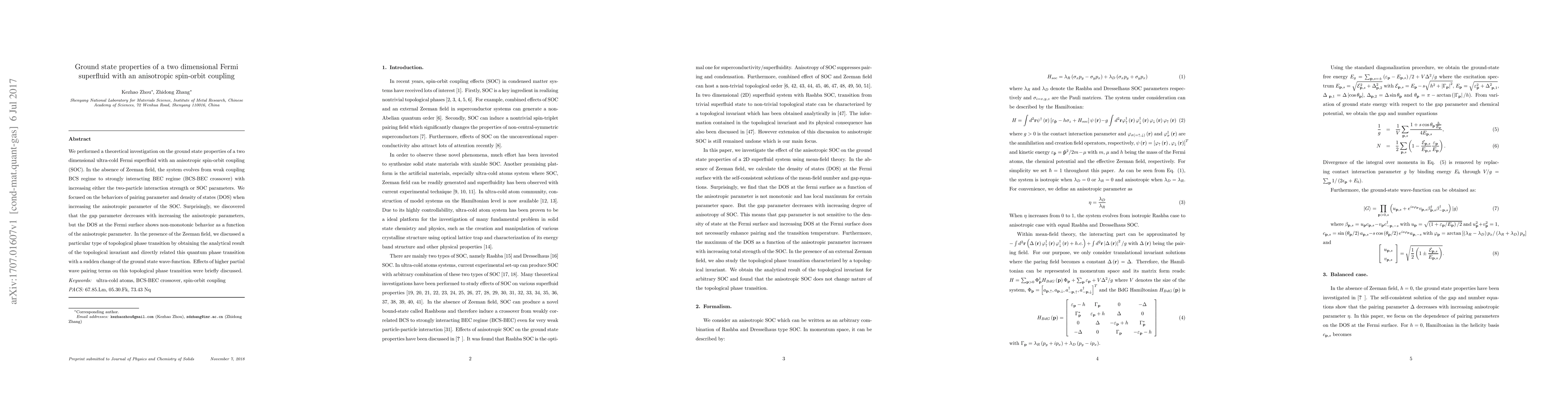 This paper investigates the ground state properties of a 2D Fermi superfluid with anisotropic spin-orbit coupling, revealing a decrease in the gap parameter with increased anisotropy despite non-monotonic density of states behavior. The study also explores topological phase transitions under a Zeeman field, linking these transitions to changes in the ground state wave-function.