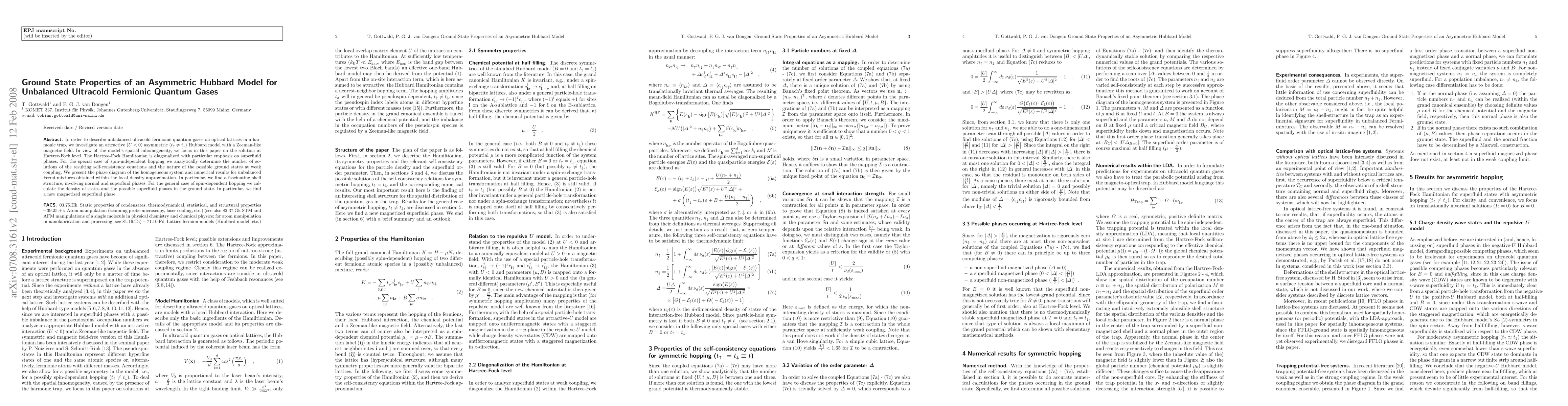 Researchers studied an asymmetric Hubbard model to describe unbalanced ultracold fermionic quantum gases on optical lattices. They found a new magnetized superfluid phase and a shell structure involving normal and superfluid phases.