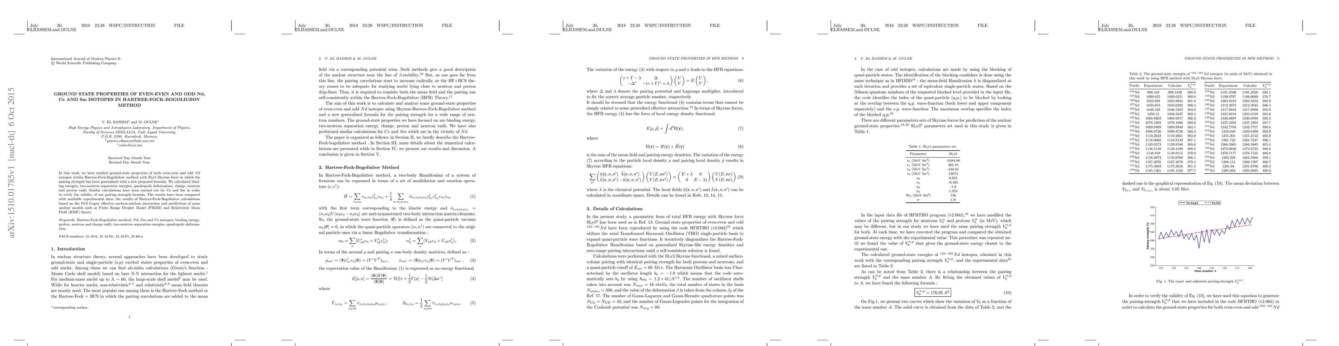 This paper investigates the ground state properties of even-even and odd Nd isotopes using the Hartree-Fock-Bogoliubov method with a new pairing strength formula. Results for binding energies, separation energies, deformation, and radii are compared with experimental data and other nuclear models.