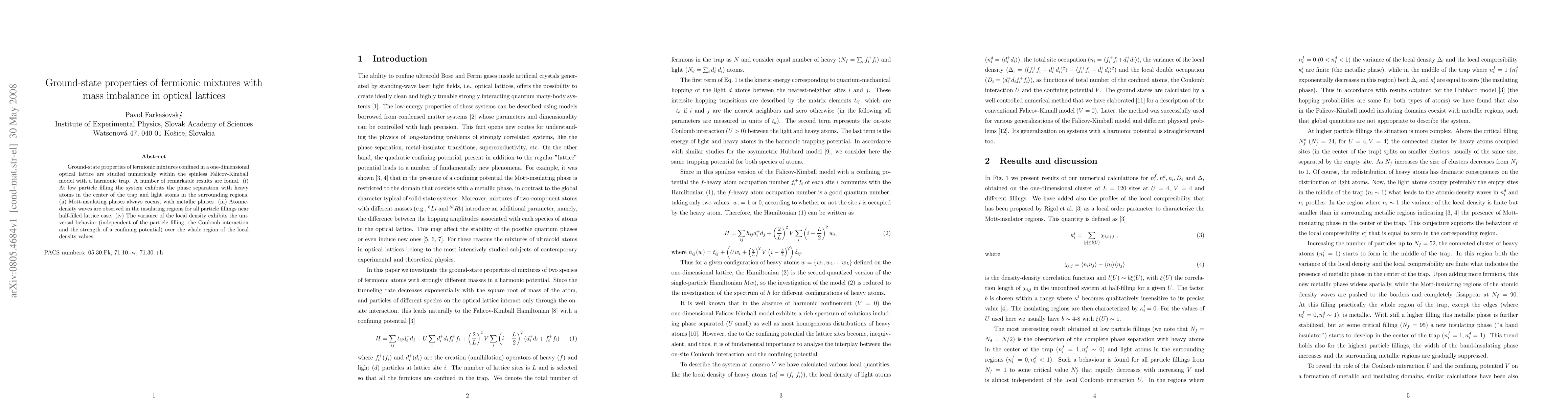 Ground-state properties of fermionic mixtures confined in a one-dimensional optical lattice are studied numerically within the spinless Falicov-Kimball model with a harmonic trap. A number of remarkable results are found. (i) At low particle filling the system exhibits the phase separation with heavy atoms in the center of the trap and light atoms in the surrounding regions. (ii) Mott-insulating phases always coexist with metallic phases. (iii) Atomic-density waves are observed in the insulating regions for all particle fillings near half-filled lattice case. (iv) The variance of the local density exhibits the universal behavior (independent of the particle filling, the Coulomb interaction and the strength of a confining potential) over the whole region of the local density values.
