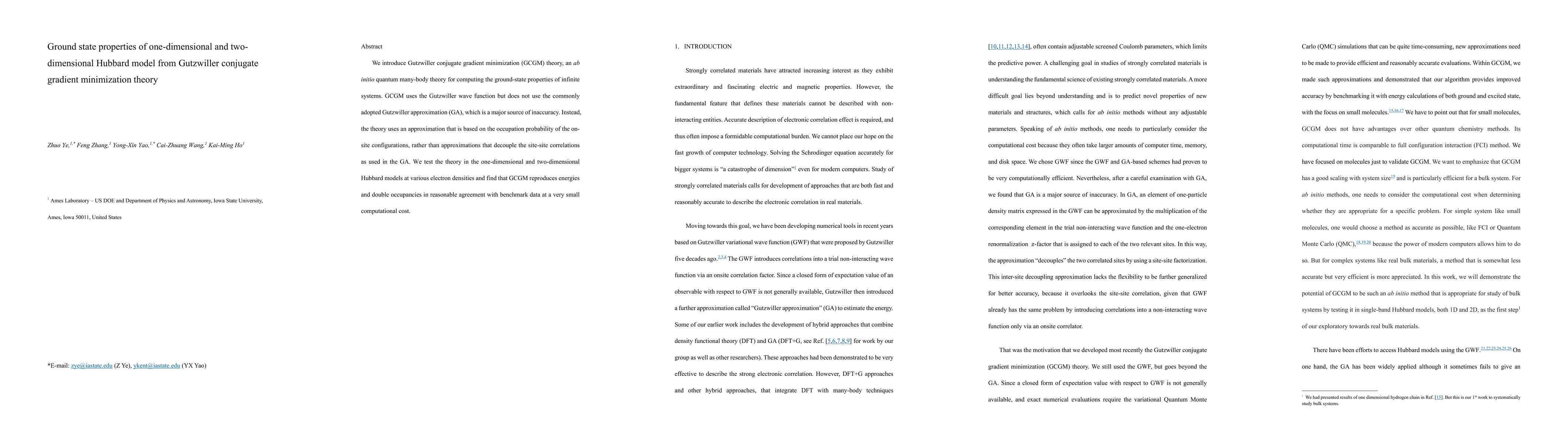 Researchers introduced a new quantum many-body theory called Gutzwiller conjugate gradient minimization that accurately computes ground-state properties of infinite systems at low computational cost. The theory improves upon existing methods by avoiding common sources of inaccuracy.