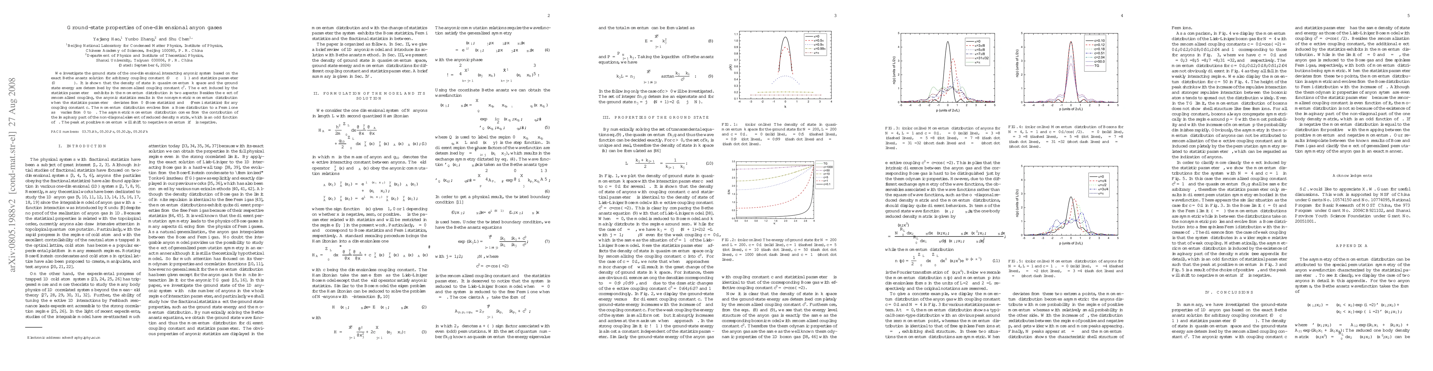Researchers studied the ground state of one-dimensional anyon gases, finding that the density of states and energy depend on a renormalized coupling constant, with statistics affecting momentum distribution in a nonsymmetric way as parameter varies from Bose to Fermi behavior.