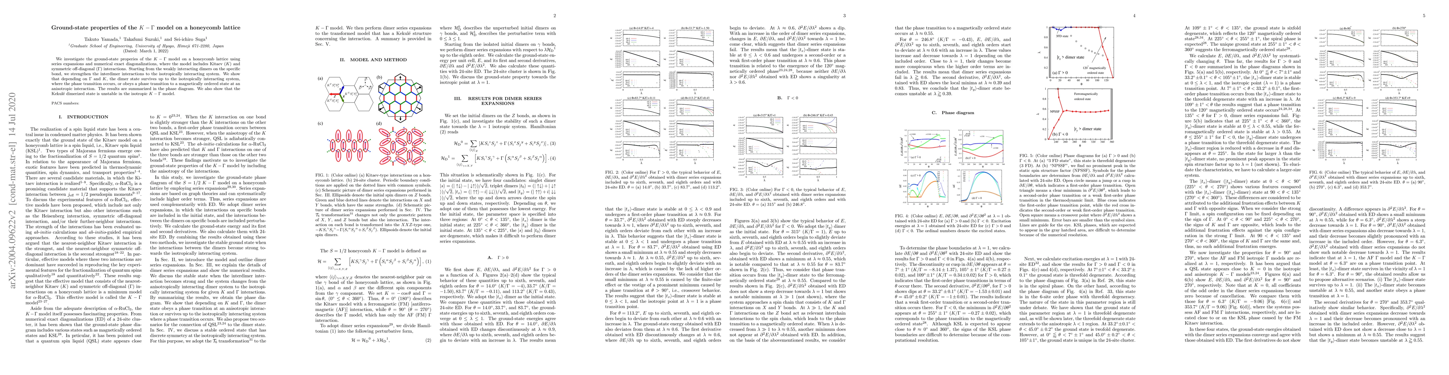 This paper investigates the ground-state properties of the $K-\Gamma$ model on a honeycomb lattice, revealing that the dimer state can either persist or transition to a magnetically ordered state depending on the balance between Kitaev ($K$) and symmetric off-diagonal ($\Gamma$) interactions, with results summarized in a phase diagram. The Kekulé dimerized state is found to be unstable in the isotropic $K-\Gamma$ model.