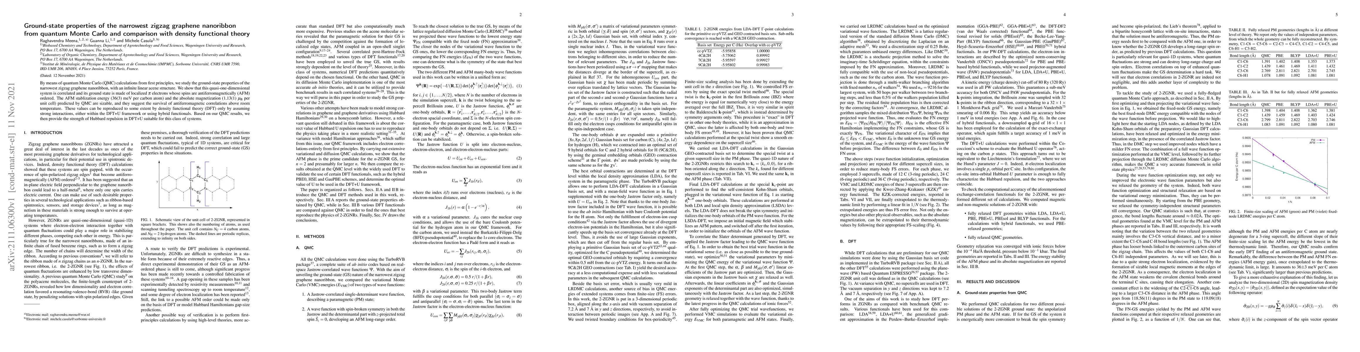 Researchers used quantum Monte Carlo calculations to study the ground-state properties of a narrowest zigzag graphene nanoribbon, finding that it exhibits antiferromagnetic correlations with significant stabilization energy and magnetization.