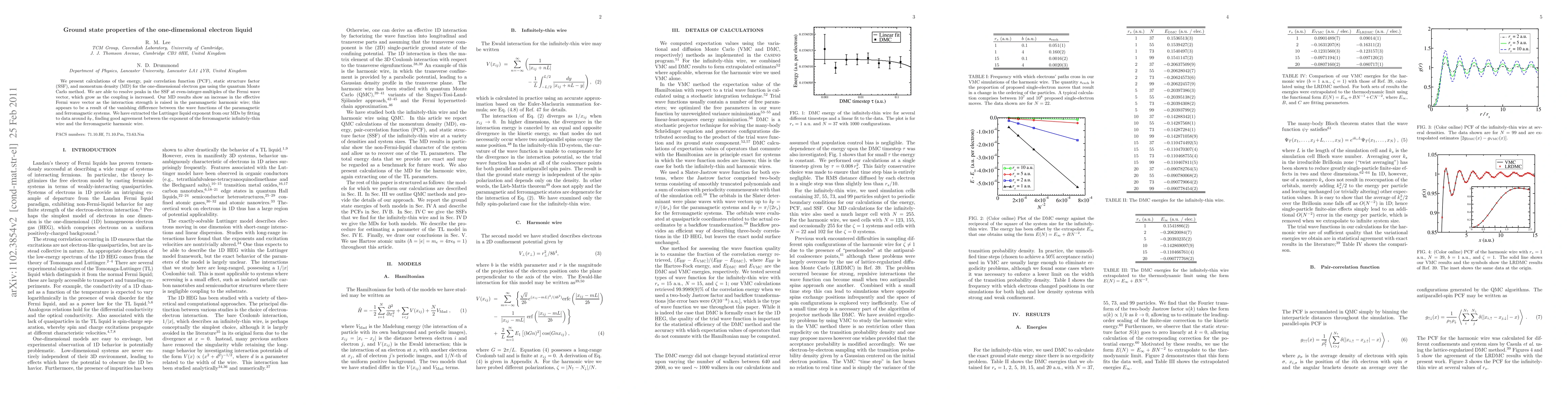 We present calculations of the energy, pair correlation function (PCF), static structure factor (SSF), and momentum density (MD) for the one-dimensional electron gas using the quantum Monte Carlo method. We are able to resolve peaks in the SSF at even-integer-multiples of the Fermi wave vector, which grow as the coupling is increased. Our MD results show an increase in the effective Fermi wave vector as the interaction strength is raised in the paramagnetic harmonic wire; this appears to be a result of the vanishing difference between the wave functions of the paramagnetic and ferromagnetic systems. We have extracted the Luttinger liquid exponent from our MDs by fitting to data around the Fermi wave vector, finding good agreement between the exponent of the ferromagnetic infinitely-thin wire and the ferromagnetic harmonic wire.