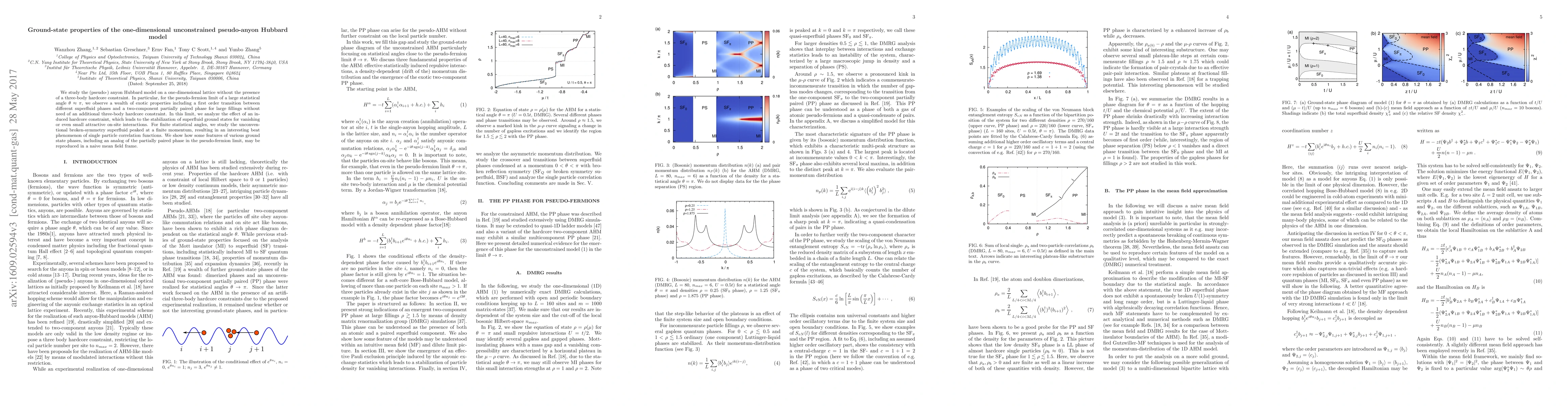 This paper investigates the ground state properties of the one-dimensional pseudo-anyon Hubbard model, revealing a first-order transition between superfluid phases and a two-component partially paired phase in the pseudo-fermion limit. It also explores the stabilization of superfluid ground states via an induced hardcore constraint and the unconventional broken-symmetry superfluid with momentum-peaked correlations.