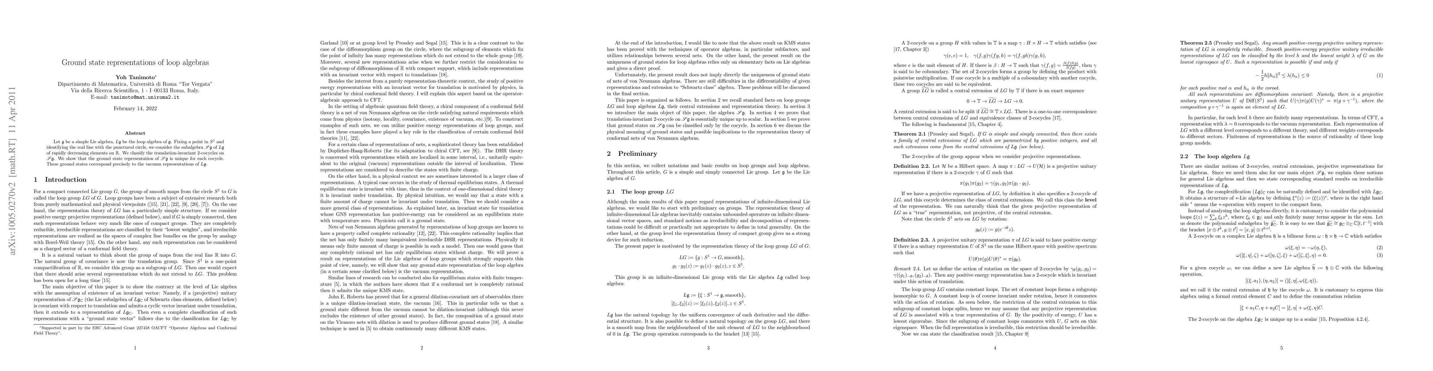 Let g be a simple Lie algebra, Lg be the loop algebra of g. Fixing a point in S^1 and identifying the real line with the punctured circle, we consider the subalgebra Sg of Lg of rapidly decreasing elements on R. We classify the translation-invariant 2-cocycles on Sg. We show that the ground state representation of Sg is unique for each cocycle. These ground states correspond precisely to the vacuum representations of Lg.