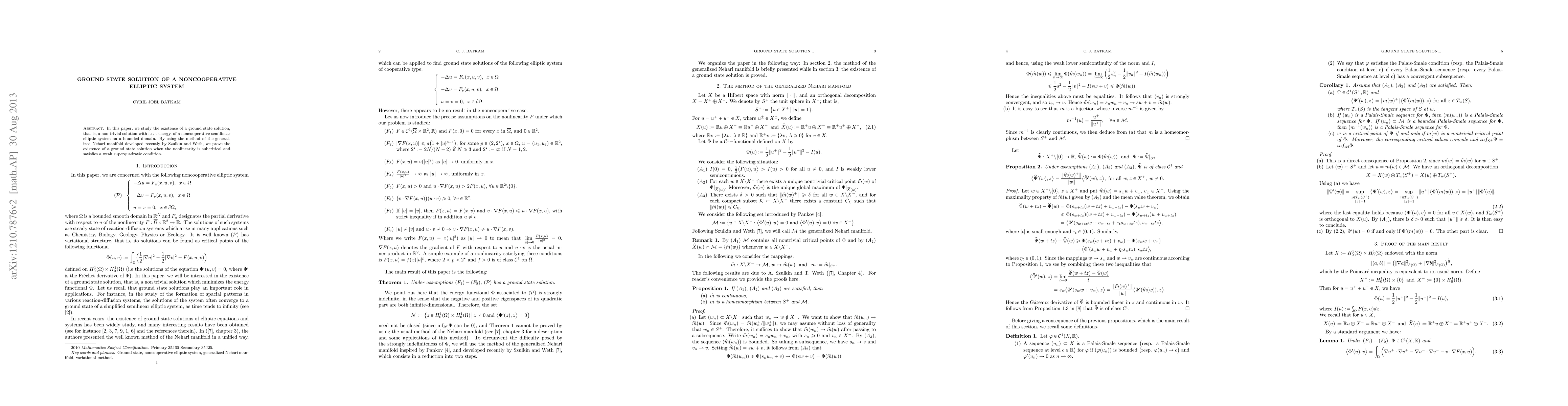 In this paper, we study the existence of a ground state solution, that is, a non trivial solution with least energy, of a noncooperative semilinear elliptic system on a bounded domain. By using the method of the generalized Nehari manifold developed recently by Szulkin and Weth, we prove the existence of a ground state solution when the nonlinearity is subcritical and satisfies a weak superquadratic condition.