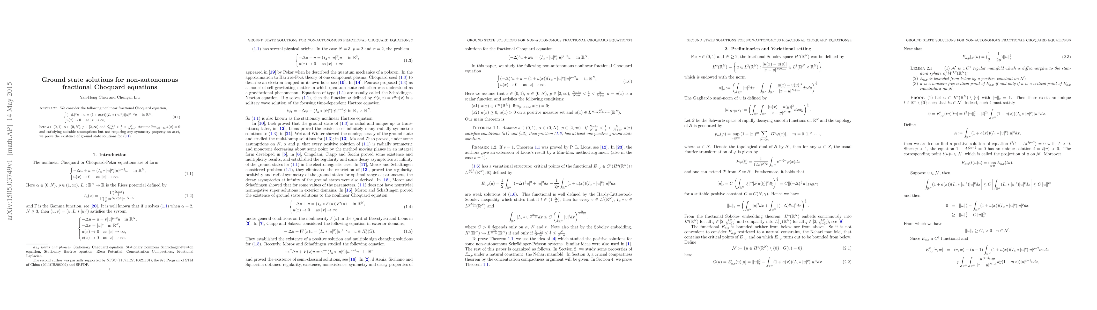 This paper investigates the existence of ground state solutions for a non-autonomous fractional Choquard equation in $\mathbb{R}^N$. Under suitable conditions on the non-local interaction term and the spatially dependent coefficient, the authors prove the existence of such solutions without requiring symmetry on $a(x)$.