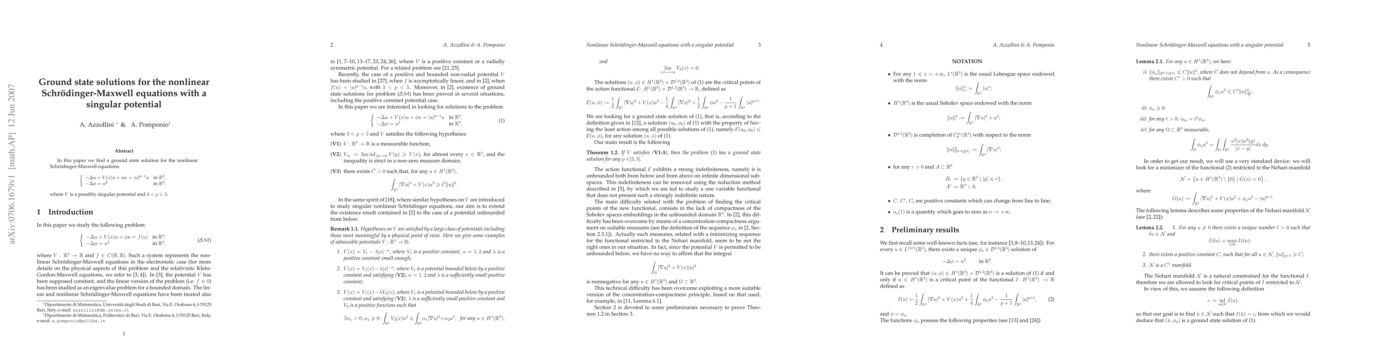 Summary: This paper proves the existence of ground state solutions for the nonlinear Schrödinger-Maxwell equations under the influence of a singular potential. The study employs advanced mathematical techniques to establish these solutions rigorously.
