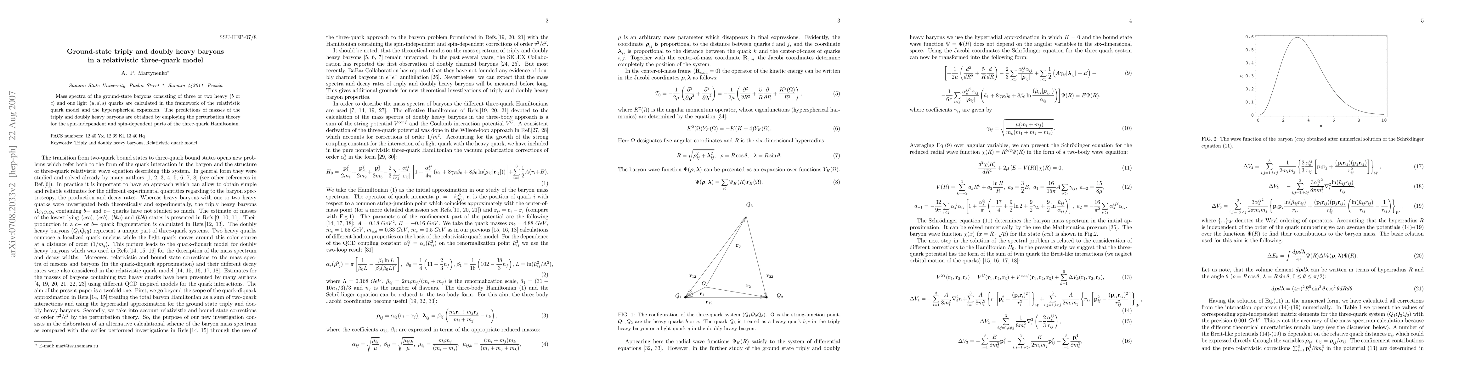 This paper calculates the mass spectra of ground-state triply and doubly heavy baryons using a relativistic three-quark model with hyperspherical expansion. Predictions for these baryons' masses are derived via perturbation theory for both spin-independent and spin-dependent components of the three-quark Hamiltonian.