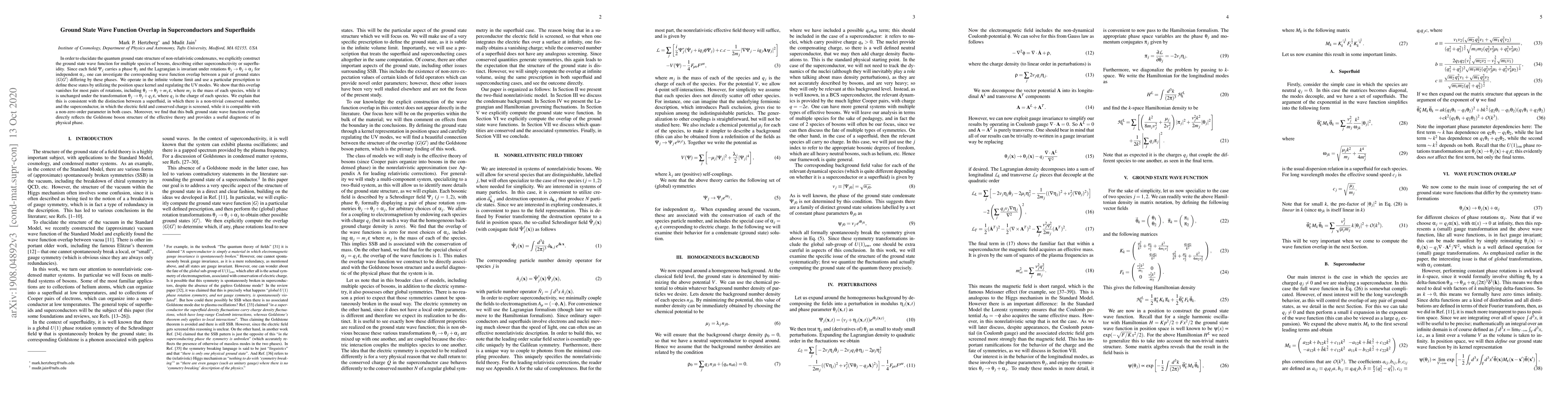 In order to elucidate the quantum ground state structure of non-relativistic condensates, we explicitly construct the ground state wave function for multiple species of bosons, describing either superconductivity or superfluidity. Since each field $\Psi_j$ carries a phase $\theta_j$ and the Lagrangian is invariant under rotations $\theta_j \to \theta_j + \alpha_j$ for independent $\alpha_j$, one can investigate the corresponding wave function overlap between a pair of ground states $\langle G|G'\rangle$ differing by these phases. We operate in the infinite volume limit and use a particular prescription to define these states by utilizing the position space kernel and regulating the UV modes. We show that this overlap vanishes for most pairs of rotations, including $\theta_j \to \theta_j + m_j \epsilon$, where $m_j$ is the mass of each species, while it is unchanged under the transformation $\theta_j \to \theta_j + q_j \epsilon$, where $q_j$ is the charge of each species. We explain that this is consistent with the distinction between a superfluid, in which there is a non-trivial conserved number, and the superconductor, in which the electric field and conserved charge is screened, while it is compatible with a non-zero order parameter in both cases. Moreover, we find that this bulk ground state wave function overlap directly reflects the Goldstone boson structure of the effective theory and provides a useful diagnostic of its physical phase.