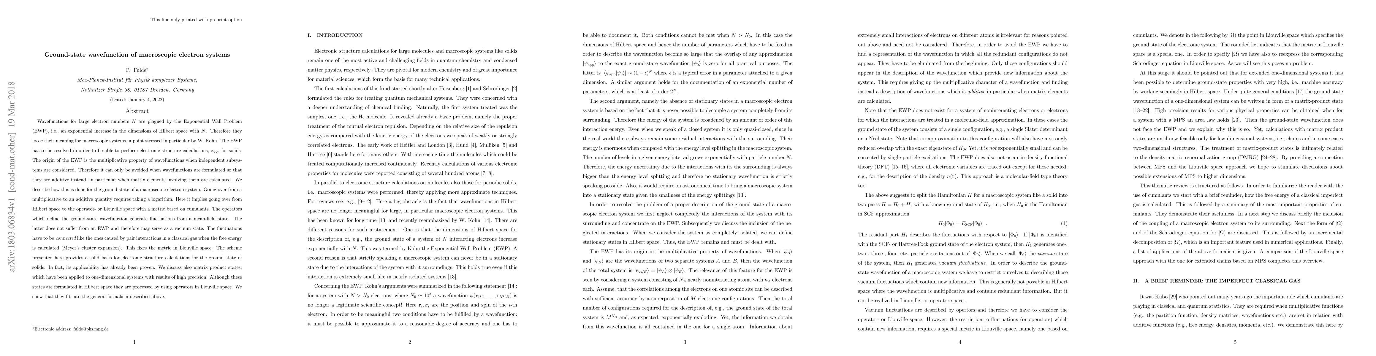 Wavefunctions for large electron numbers $N$ are plagued by the Exponential Wall Problem (EWP), i.e., an exponential increase in the dimensions of Hilbert space with $N$. Therefore they loose their meaning for macroscopic systems, a point stressed in particular by W. Kohn. The EWP has to be resolved in order to be able to perform electronic structure calculations, e.g., for solids. The origin of the EWP is the multiplicative property of wavefunctions when independent subsystems are considered. Therefore it can only be avoided when wavefunctions are formulated so that they are additive instead, in particular when matrix elements involving them are calculated. We describe how this is done for the ground state of a macroscopic electron system. Going over from a multiplicative to an additive quantity requires taking a logarithm. Here it implies going over from Hilbert space to the operator- or Liouville space with a metric based on cumulants. The operators which define the ground-state wavefunction generate fluctuations from a mean-field state. The latter does not suffer from an EWP and therefore may serve as a vacuum state. The fluctuations have to be {\it connected} like the ones caused by pair interactions in a classical gas when the free energy is calculated (Meyer's cluster expansion). This fixes the metric in Liouville space. The scheme presented here provides a solid basis for electronic structure calculations for the ground state of solids. In fact, its applicability has already been proven. We discuss also matrix product states, which have been applied to one-dimensional systems with results of high precision. Although these states are formulated in Hilbert space they are processed by using operators in Liouville space. We show that they fit into the general formalism described above.