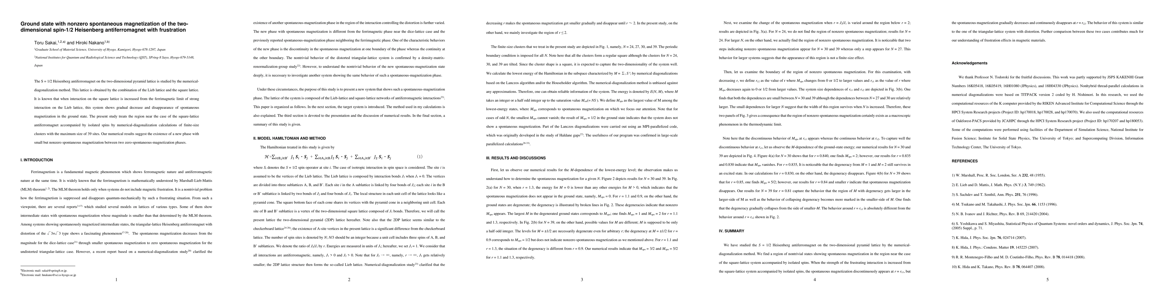 This paper investigates the ground state of a two-dimensional spin-1/2 Heisenberg antiferromagnet on a pyramid lattice using numerical-diagonalization. The study reveals a new phase with small but nonzero spontaneous magnetization, suggesting a transition between regions of zero spontaneous magnetization.