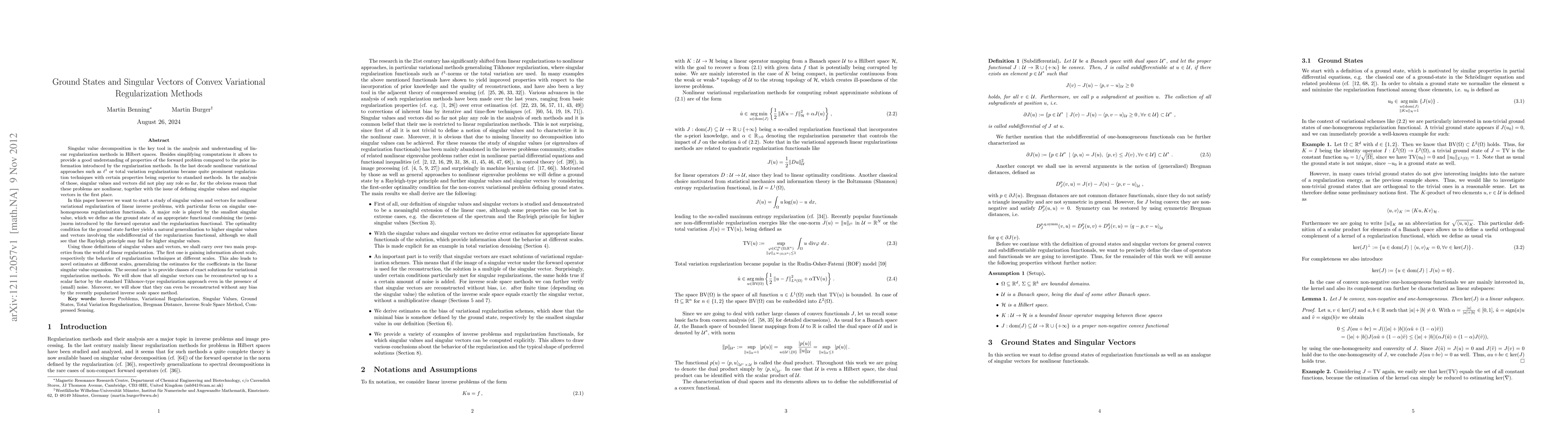 This paper explores singular values and vectors in nonlinear variational regularization methods, defining the smallest singular value as the ground state of a combined functional. It generalizes the concept to higher singular values and provides exact solutions, showing that singular vectors can be reconstructed accurately even in noisy conditions using Tikhonov-type and inverse scale space methods.
