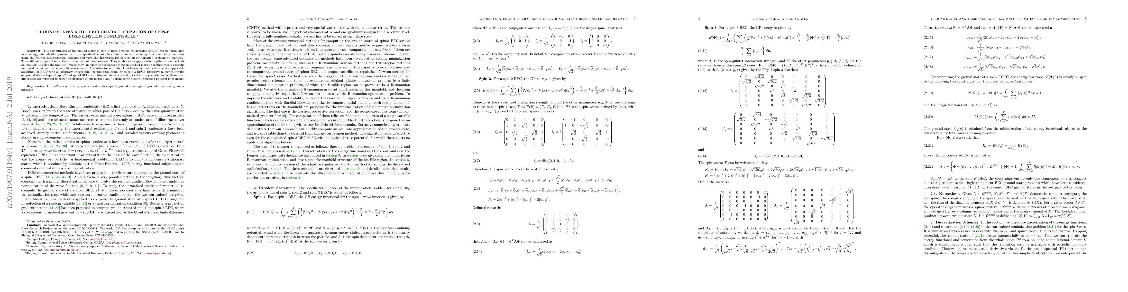 The computation of the ground states of spin-$F$ Bose-Einstein condensates (BECs) can be formulated as an energy minimization problem with two quadratic constraints. We discretize the energy functional and constraints using the Fourier pseudospectral schemes and view the discretized problem as an optimization problem on manifold. Three different types of retractions to the manifold are designed. They enable us to apply various optimization methods on manifold to solve the problem. Specifically, an adaptive regularized Newton method is used together with a cascadic multigrid technique to accelerate the convergence. According to our limited knowledege, our method is the first applicable algorithm for BECs with an arbitrary integer spin, including the complicated spin-3 BECs. Extensive numerical results on ground states of spin-1, spin-2 and spin-3 BECs with diverse interaction and optical lattice potential in one/two/three dimensions are reported to show the efficiency of our method and to demonstrate some interesting physical phenomena.