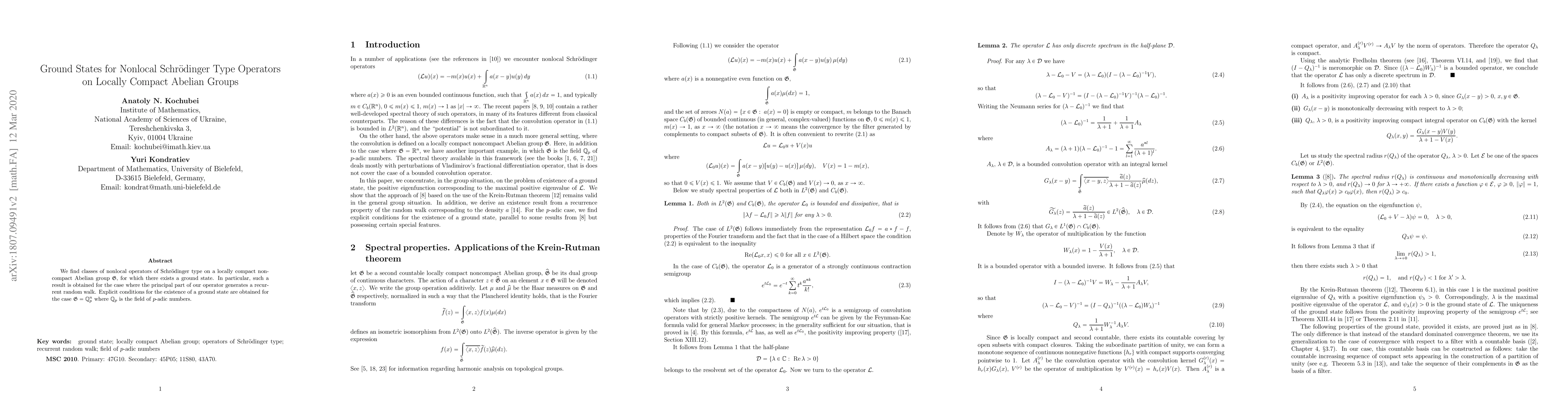 Researchers have found classes of nonlocal Schrödinger type operators on locally compact Abelian groups with a ground state, with explicit conditions obtained for the case of p-adic numbers.