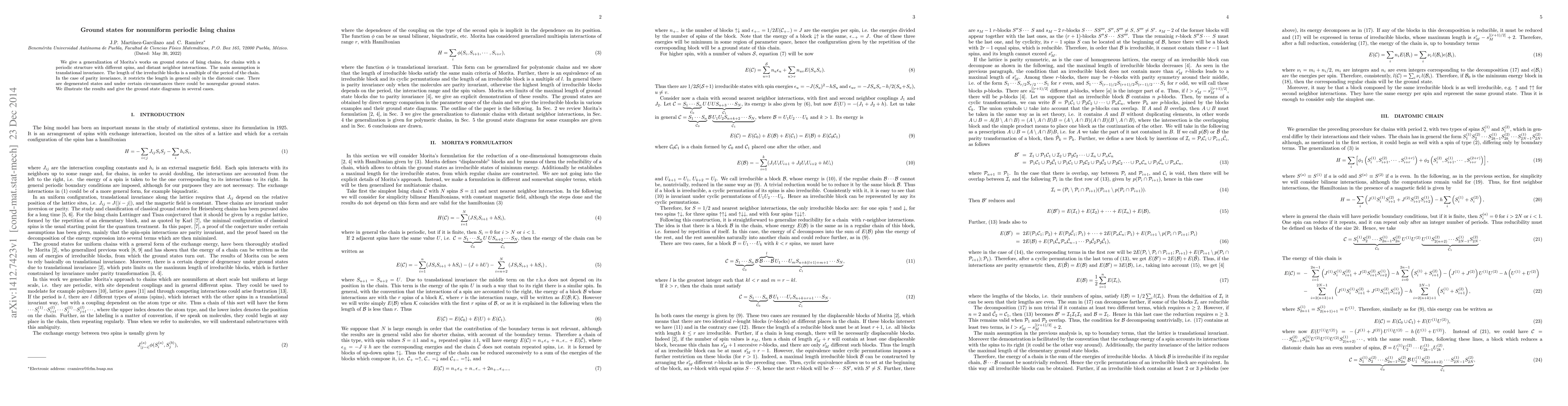 This paper generalizes Morita's work on Ising chains to nonuniform periodic chains with varying spins and distant neighbor interactions, assuming translational invariance. It explores the length of irreducible blocks and discusses the possibility of degenerate and nonregular ground states, providing ground state diagrams for various cases.