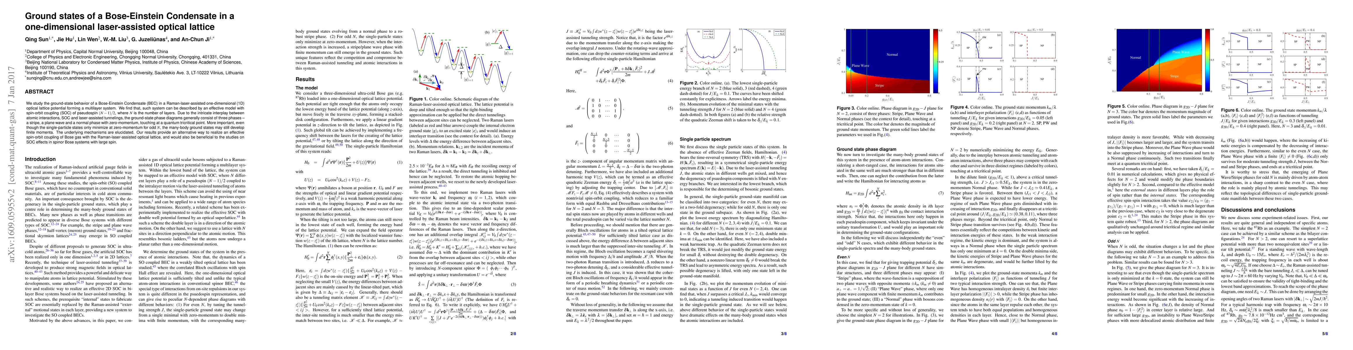 This paper investigates the ground-state phases of a Bose-Einstein Condensate in a Raman-laser-assisted one-dimensional optical lattice, revealing three phases: stripe, plane wave, and normal. The study elucidates the mechanisms behind the development of finite momenta in many-body ground states despite zero-momentum minimization in single-particle states.