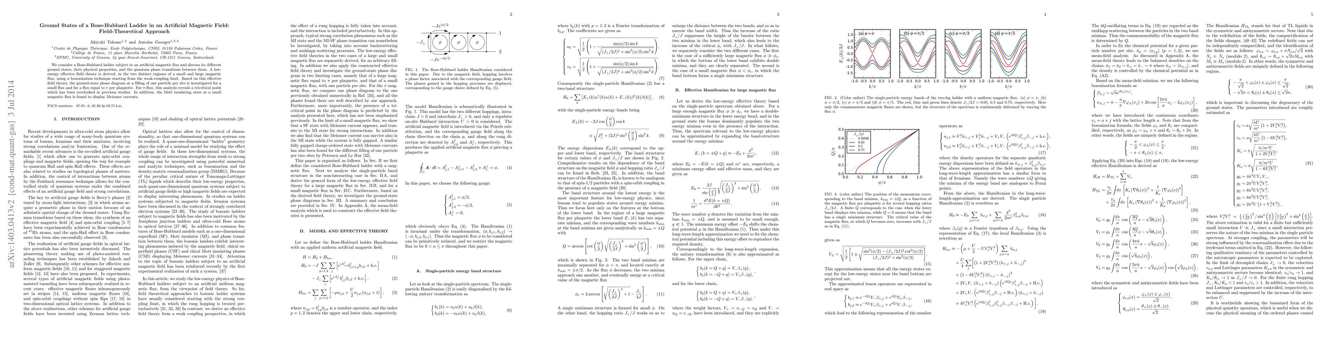 This paper investigates the ground states of a Bose-Hubbard ladder under an artificial magnetic field, deriving an effective field theory to explore quantum phase transitions. It identifies a previously overlooked tricritical point at $\pi$-flux and finds Meissner currents in the Mott insulating state at small flux.