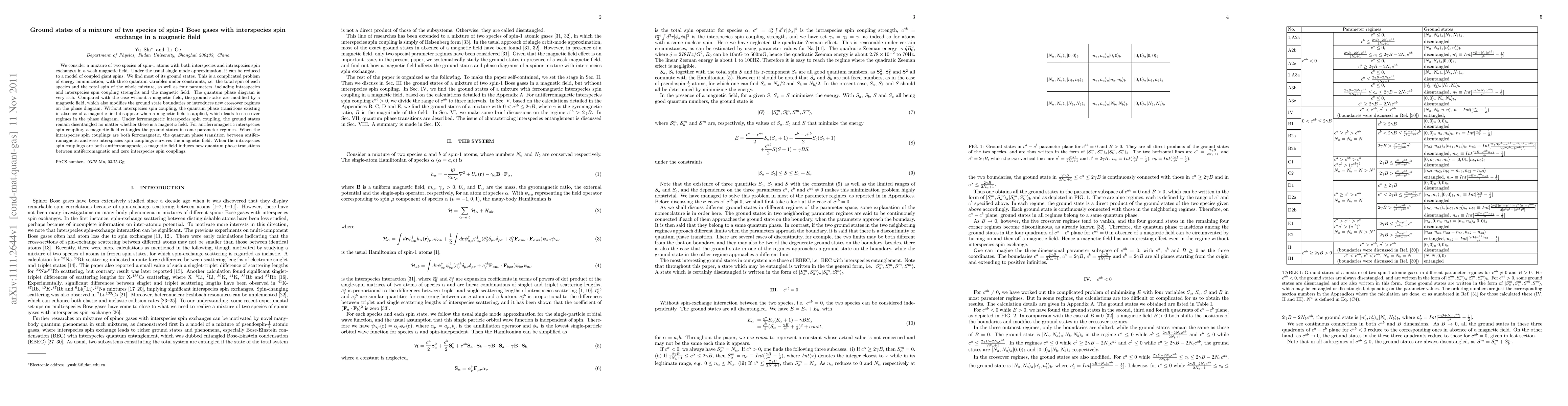 This paper investigates the ground states of a spin-1 Bose gas mixture with interspecies spin exchange in a magnetic field, revealing a complex quantum phase diagram influenced by magnetic field strength and spin coupling types. The magnetic field modifies ground states and phase boundaries, leading to new crossover regimes and phase transitions depending on the nature of spin couplings.