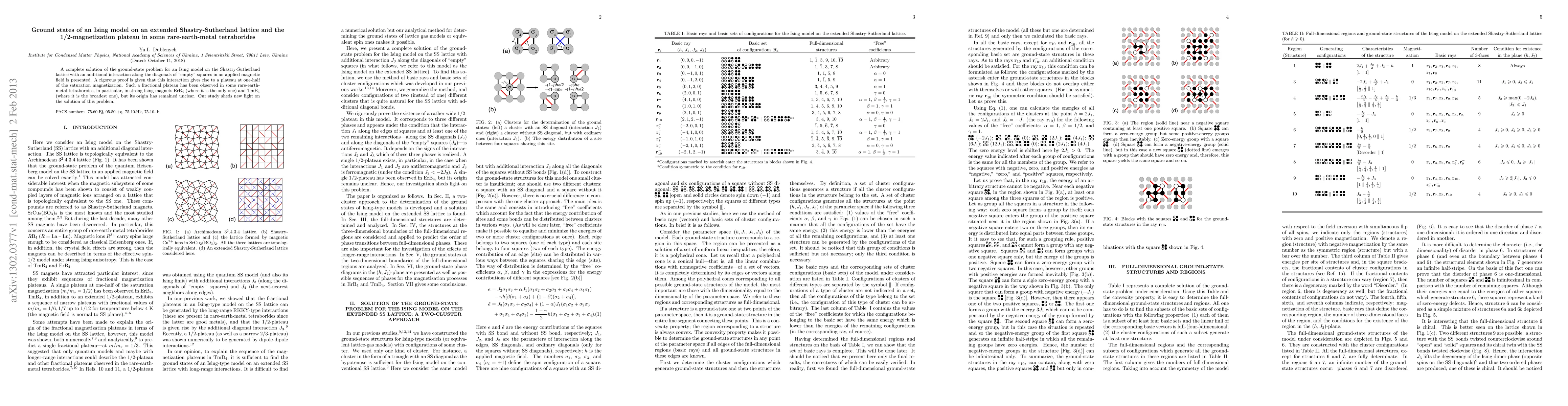 This paper presents a complete solution for the ground state of an Ising model on an extended Shastry-Sutherland lattice, demonstrating the emergence of a 1/2-magnetization plateau due to diagonal interactions. This fractional plateau, previously observed in rare-earth tetraborides like ErB4 and TmB4, is now explained through the model's rigorous proof.