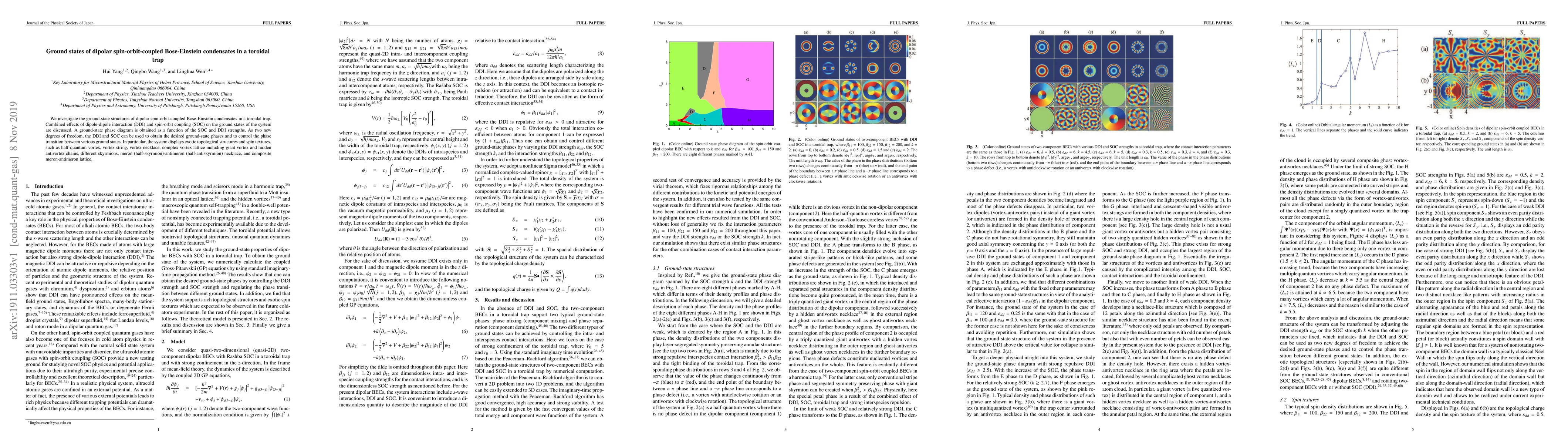 This paper explores the ground-state structures of dipolar spin-orbit-coupled Bose-Einstein condensates in a toroidal trap, revealing how dipole-dipole interaction and spin-orbit coupling influence the system. The study identifies a variety of exotic topological structures and spin textures, including vortex strings, skyrmions, and meron-antimeron lattices.
