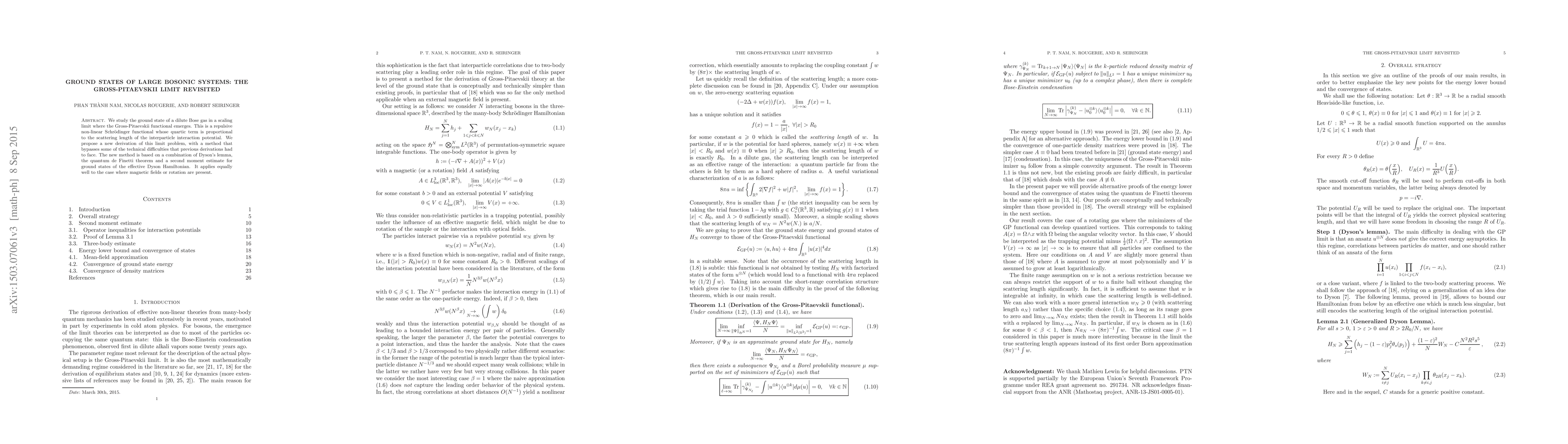 We study the ground state of a dilute Bose gas in a scaling limit where the Gross-Pitaevskii functional emerges. This is a repulsive non-linear Schr\"odinger functional whose quartic term is proportional to the scattering length of the interparticle interaction potential. We propose a new derivation of this limit problem, with a method that bypasses some of the technical difficulties that previous derivations had to face. The new method is based on a combination of Dyson's lemma, the quantum de Finetti theorem and a second moment estimate for ground states of the effective Dyson Hamiltonian. It applies equally well to the case where magnetic fields or rotation are present.