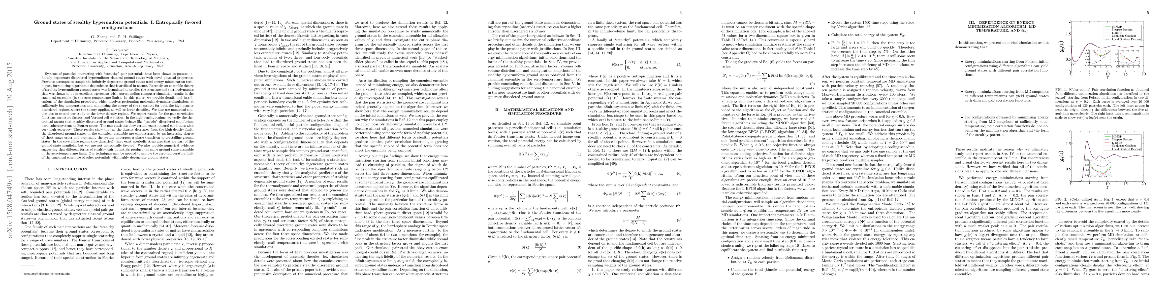 This paper details molecular dynamics simulations to study the ground states of particles interacting with stealthy pair potentials, revealing infinitely degenerate disordered hyperuniform states. The study confirms theoretical predictions about the behavior of these states, showing that as density decreases, the system transitions from disordered to crystalline ground states, and different stealthy potentials yield the same ground-state ensemble at zero temperature.