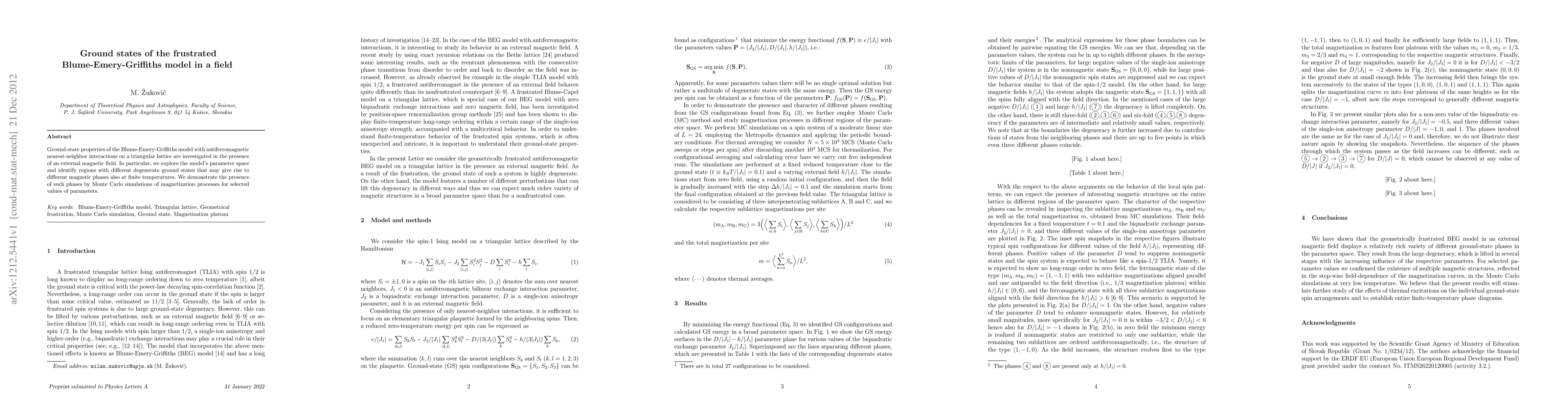 This paper investigates the ground-state properties of the frustrated Blume-Emery-Griffiths model on a triangular lattice under an external magnetic field, identifying regions with degenerate ground states and different magnetic phases, confirmed through Monte Carlo simulations.