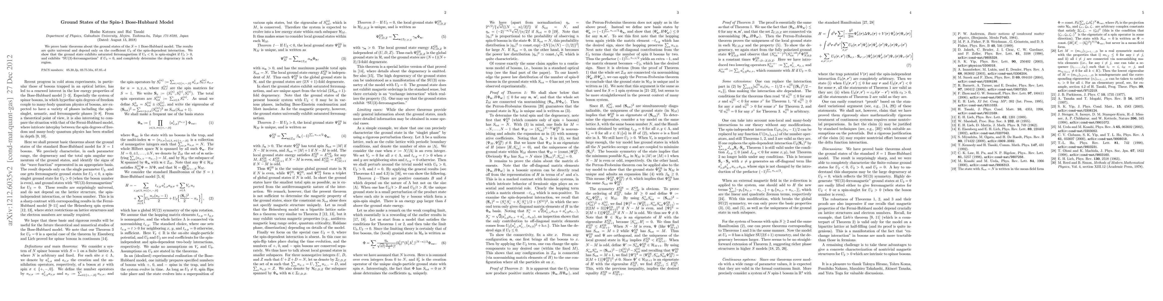 This paper proves fundamental theorems about the ground states of the spin-1 Bose-Hubbard model, showing that the ground state behavior depends solely on the spin-dependent interaction coefficient U_2. The model exhibits saturated ferromagnetism for U_2<0, a spin-singlet for U_2>0, and "SU(3)-ferromagnetism" when U_2=0, with complete determination of degeneracies in each case.