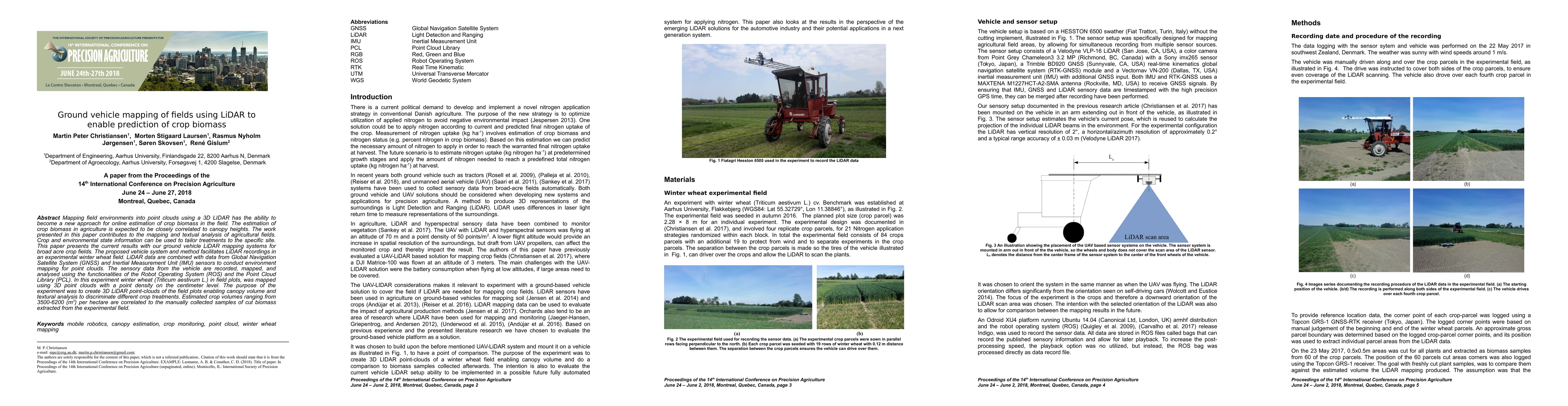 This paper explores the use of ground vehicle LiDAR mapping to create 3D point clouds of winter wheat fields, correlating canopy height and volume to crop biomass. The method integrates LiDAR, GNSS, and IMU data processed via ROS and PCL to enable precise environmental mapping and biomass prediction.