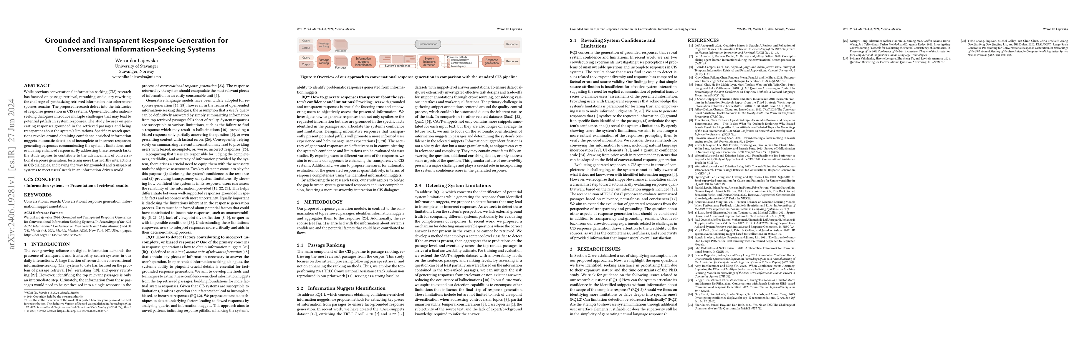 This paper investigates methods for generating coherent and transparent responses in conversational information-seeking systems, focusing on grounding responses in retrieved passages and being transparent about system limitations. The study aims to enhance system trustworthiness through confidence-enriched information, detection of incomplete responses, and communication of system constraints.