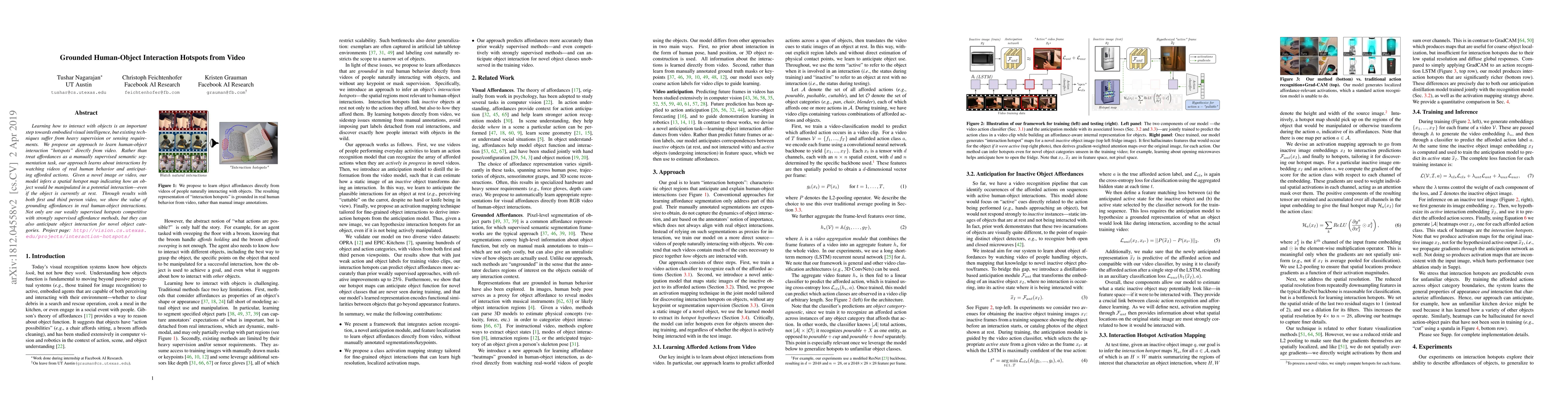 Learning how to interact with objects is an important step towards embodied visual intelligence, but existing techniques suffer from heavy supervision or sensing requirements. We propose an approach to learn human-object interaction "hotspots" directly from video. Rather than treat affordances as a manually supervised semantic segmentation task, our approach learns about interactions by watching videos of real human behavior and anticipating afforded actions. Given a novel image or video, our model infers a spatial hotspot map indicating how an object would be manipulated in a potential interaction-- even if the object is currently at rest. Through results with both first and third person video, we show the value of grounding affordances in real human-object interactions. Not only are our weakly supervised hotspots competitive with strongly supervised affordance methods, but they can also anticipate object interaction for novel object categories.