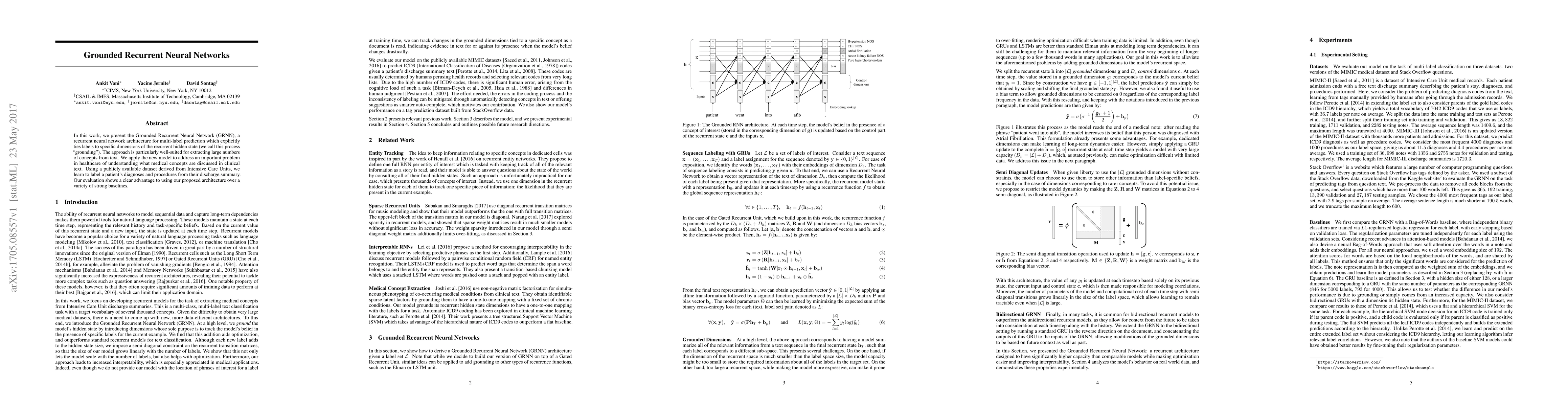 Researchers introduced Grounded Recurrent Neural Networks for multi-label prediction, showing a clear advantage in extracting medical concepts from clinical text.