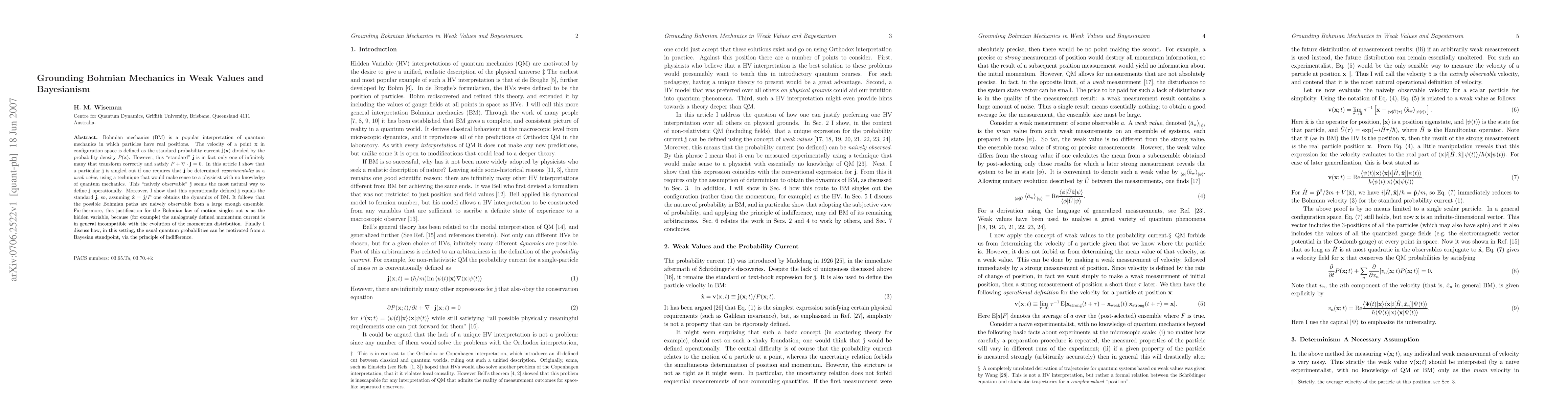 This paper demonstrates that Bohmian mechanics can be grounded in weak values and Bayesianism, showing that a unique experimentally determinable velocity current aligns with the standard current in BM, thus revealing hidden variables and deriving quantum probabilities from a Bayesian perspective.