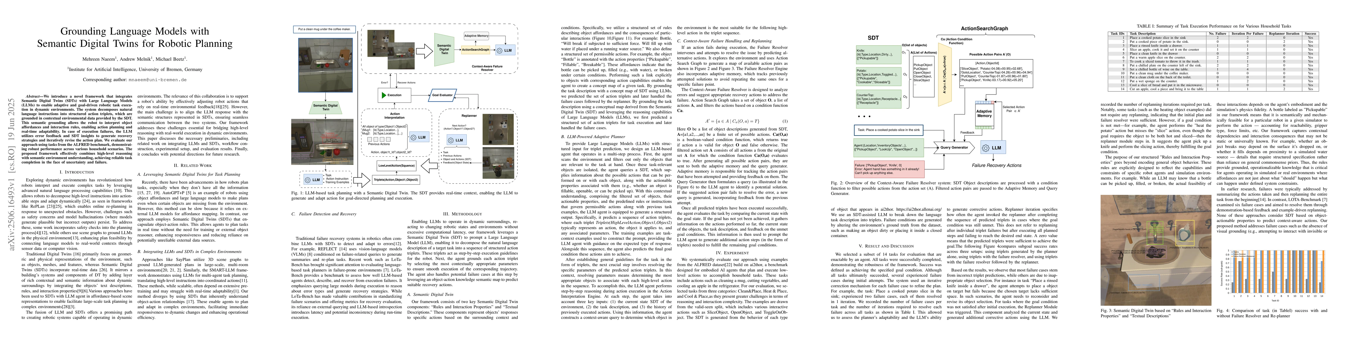 The paper presents a framework that merges Semantic Digital Twins (SDTs) with Large Language Models (LLMs) to enhance robotic task execution in changing environments. This system breaks down natural language commands into actionable steps, using SDT's contextual data for precise interpretation. It allows robots to understand object uses and interaction guidelines, facilitating adaptive action planning and error recovery, proving effective in household tasks as shown in ALFRED benchmark evaluations.