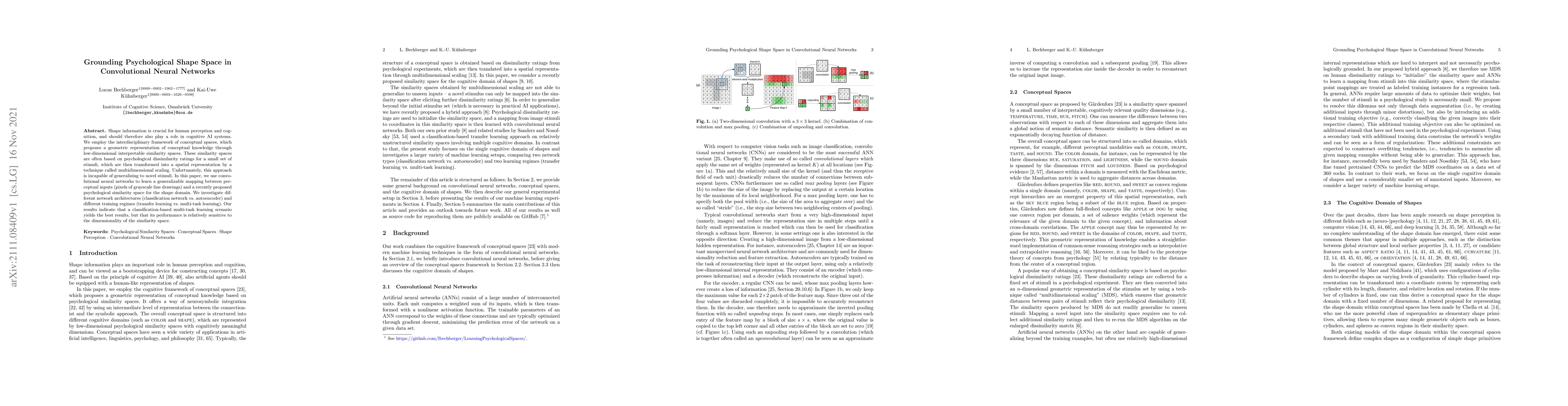 The paper presents a novel method of grounding psychological shape space in convolutional neural networks, enabling the learning of a generalizable mapping between perceptual inputs and a psychological similarity space for shapes.