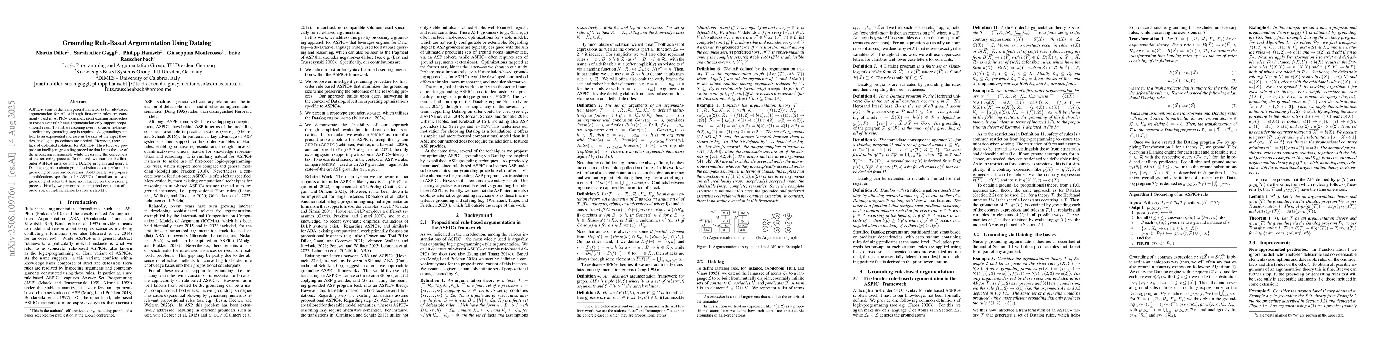 ASPIC+ is one of the main general frameworks for rule-based argumentation for AI. Although first-order rules are commonly used in ASPIC+ examples, most existing approaches to reason over rule-based argumentation only support propositional rules. To enable reasoning over first-order instances, a preliminary grounding step is required. As groundings can lead to an exponential increase in the size of the input theories, intelligent procedures are needed. However, there is a lack of dedicated solutions for ASPIC+. Therefore, we propose an intelligent grounding procedure that keeps the size of the grounding manageable while preserving the correctness of the reasoning process. To this end, we translate the first-order ASPIC+ instance into a Datalog program and query a Datalog engine to obtain ground substitutions to perform the grounding of rules and contraries. Additionally, we propose simplifications specific to the ASPIC+ formalism to avoid grounding of rules that have no influence on the reasoning process. Finally, we performed an empirical evaluation of a prototypical implementation to show scalability.