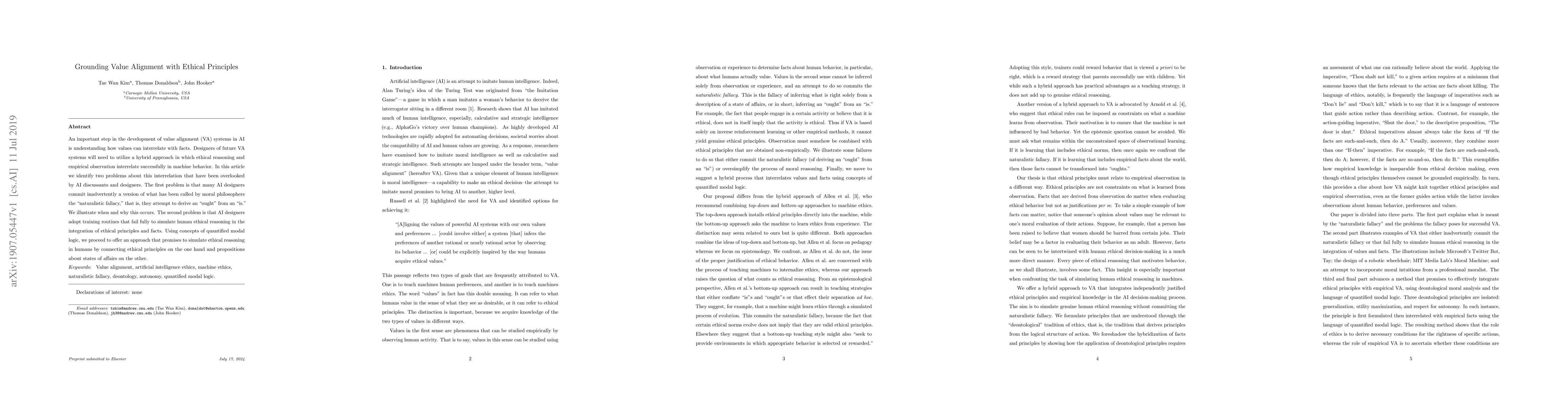 This paper identifies two overlooked issues in aligning AI values with ethical principles: the "naturalistic fallacy" in deriving ethical "oughts" from factual "is," and inadequate training routines that fail to simulate human ethical reasoning. The authors propose a hybrid approach using quantified modal logic to better integrate ethical principles with factual data.
