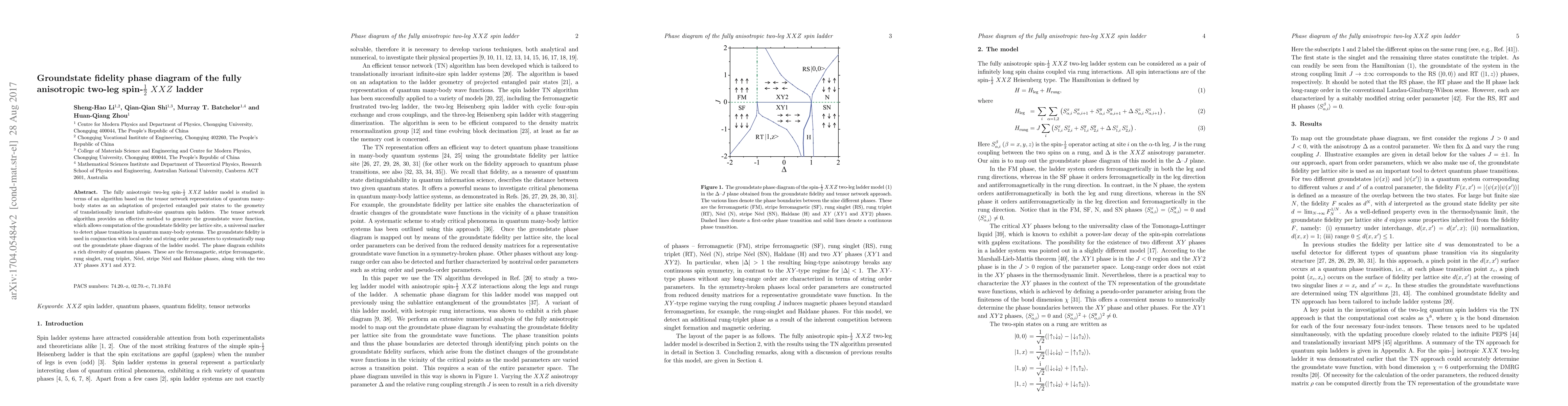 This paper investigates the groundstate fidelity phase diagram of the fully anisotropic two-leg spin-1/2 XXZ ladder using a tensor network algorithm. The study reveals a rich diversity of quantum phases, including ferromagnetic, N$\rm \acute{e}$el, and Haldane phases, among others.