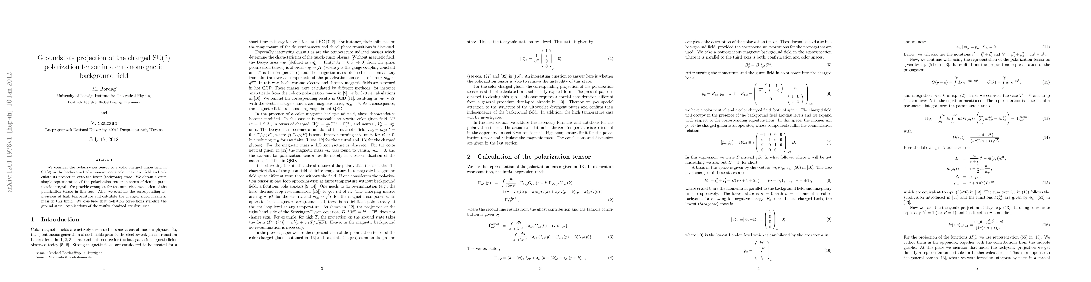 Researchers calculate the polarization tensor of a charged gluon field in a chromomagnetic background field, finding that radiation corrections stabilize its ground state.