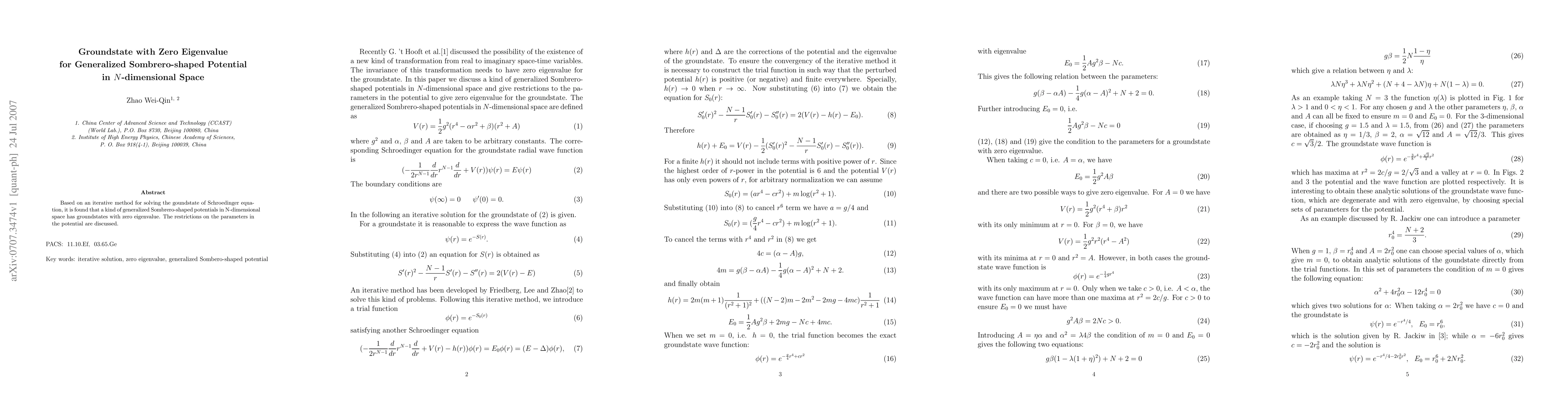 Based on an iterative method for solving the goundstate of Schroedinger equation, it is found that a kind of generalized Sombrero-shaped potentials in N-dimensional space has groundstates with zero eigenvalue. The restrictions on the parameters in the potential are discussed.