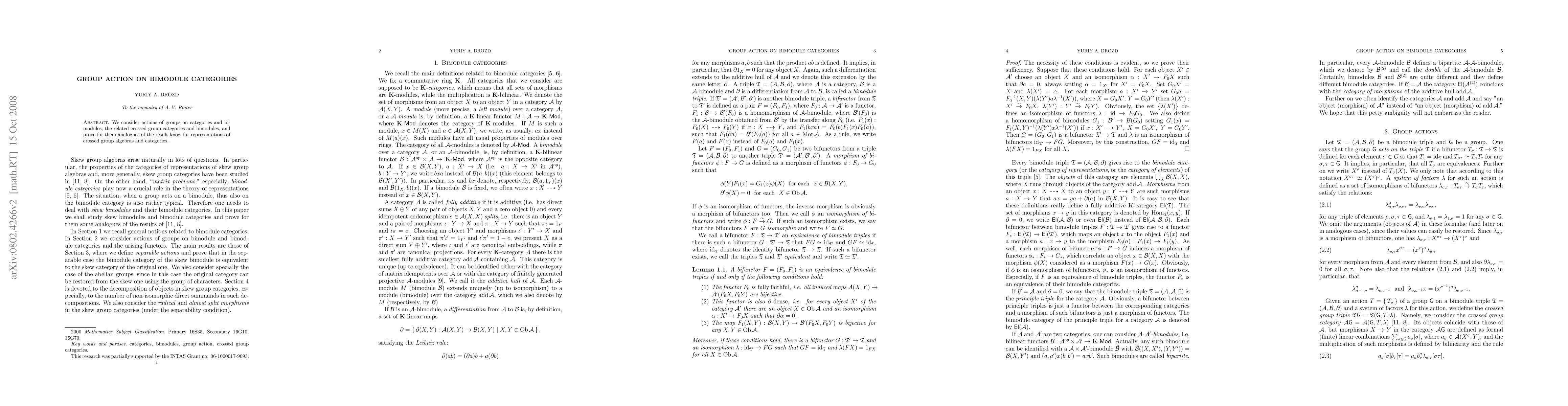Summary: This paper investigates group actions on bimodules and bimodule categories, establishing analogues of known results for representations of skew group algebras, particularly focusing on separable actions.