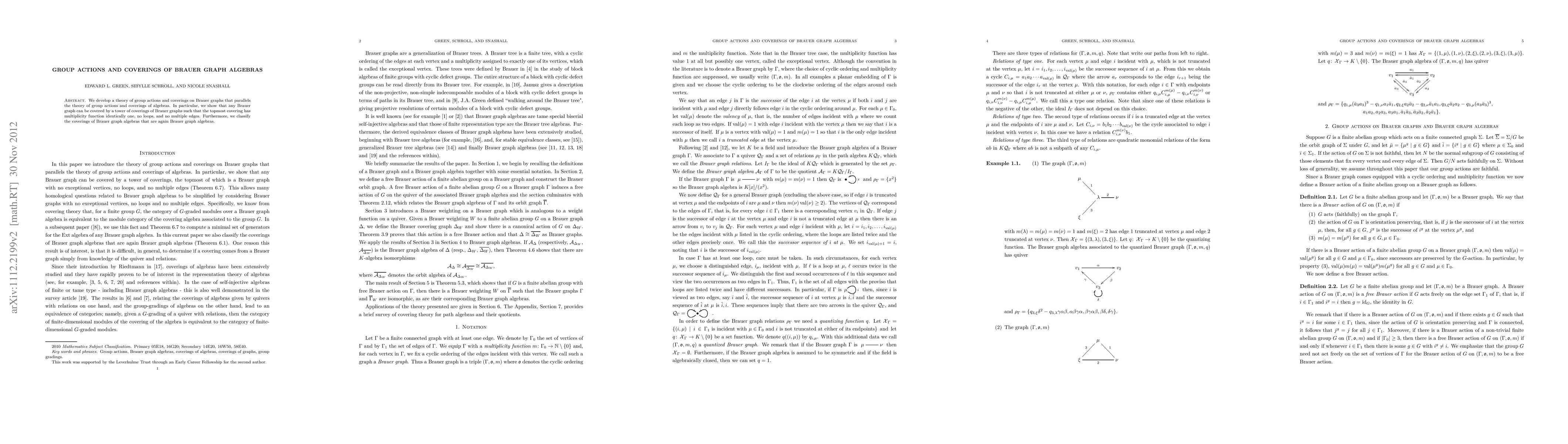 The paper introduces a systematic approach to group actions and coverings on Brauer graphs, extending classical algebraic covering theory to this specific combinatorial and algebraic structure.