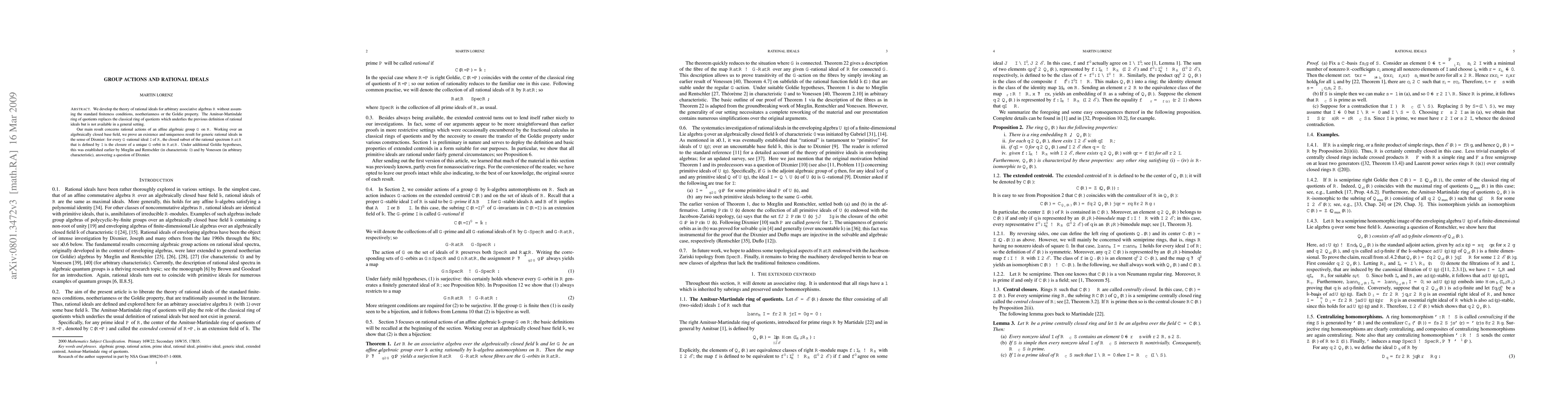 We develop the theory of rational ideals for arbitrary associative algebras R without assuming the standard finiteness conditions, noetherianness or the Goldie property. The Amitsur-Martindale ring of quotients replaces the classical ring of quotients which underlies the previous definition of rational ideals but is not available in a general setting. Our main result concerns rational actions of an affine algebraic group G on R. Working over an algebraically closed base field, we prove an existence and uniqueness result for generic rational ideals: for every G-rational ideal I of R, the closed subset of the rational spectrum Rat R that is defined by I is the closure of a unique G-orbit in Rat R. Under additional Goldie hypotheses, this was established earlier by Moeglin and Rentschler (in characteristic zero) and by Vonessen (in arbitrary characteristic), answering a question of Dixmier.
