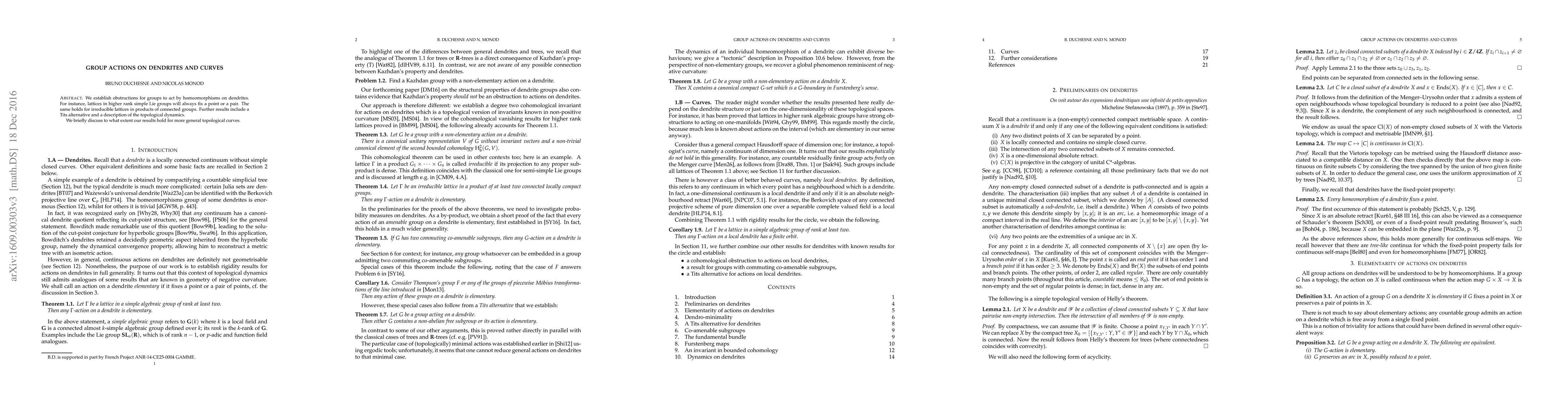 This paper investigates obstructions for groups to act by homeomorphisms on dendrites, showing that certain lattices fix points or pairs. It establishes a Tits alternative and describes the topological dynamics, while also briefly exploring the extent of these results for general topological curves.