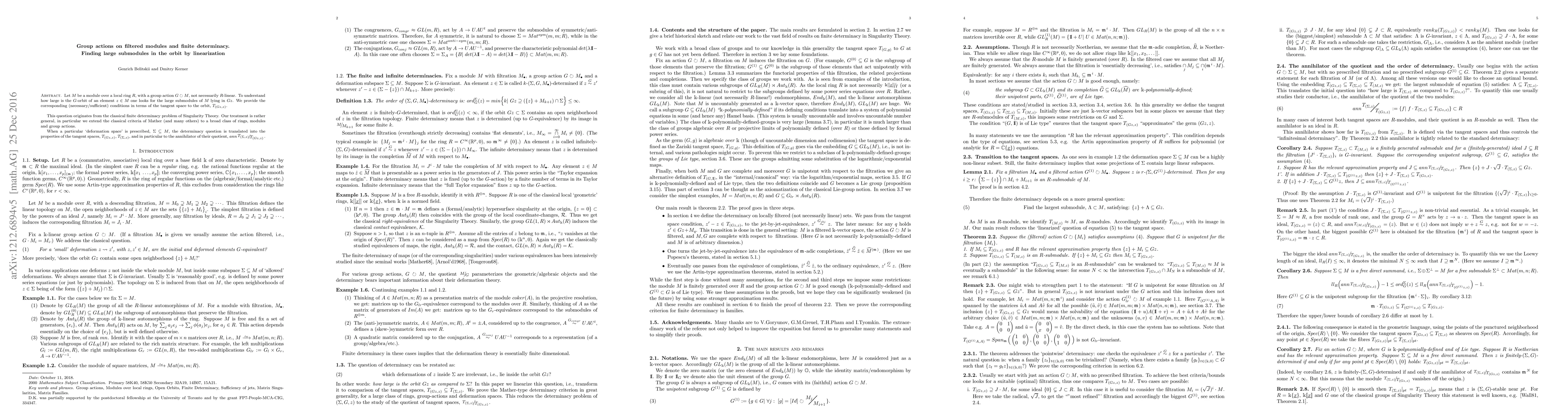 Fix a module M over a local ring R and a group action G on M, not necessarily R-linear. To understand how large is the G-orbit of an element z\in M one looks for the large submodules of M lying in Gz. We provide the corresponding (necessary/sufficient) conditions in terms of the tangent space to the orbit, T_{(Gz,z)}. This question originates from the classical finite determinacy problem of Singularity Theory. Our treatment is rather general, in particular we extend the classical criteria of Mather (and many others) to a broad class of rings, modules and group actions. When a particular `deformation space' is prescribed, \Sigma\subseteq M, the determinacy question is translated into the properties of the tangent spaces, T_{(Gz,z)}, T_{(\Si,z)}, and in particular to the annihilator of their quotient.